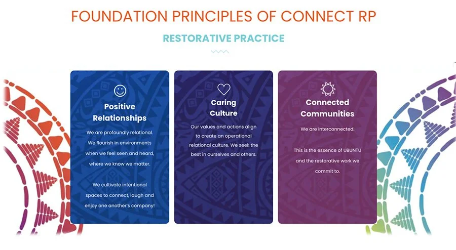 “a values-based philosophy that aims to consciously build relationships and respond to harm and conflict in a way that honours relationships, which connects us to our best selves and to one another.”